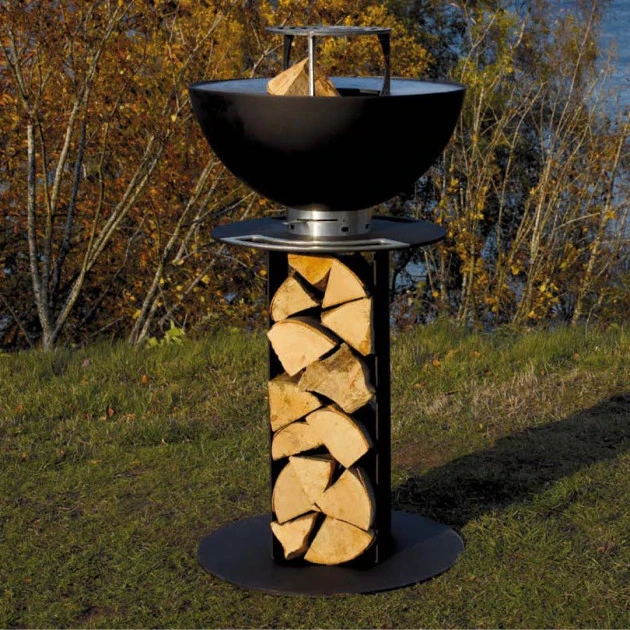 - Le rangement à bois complète parfaitement la conception brute et originale du braséro