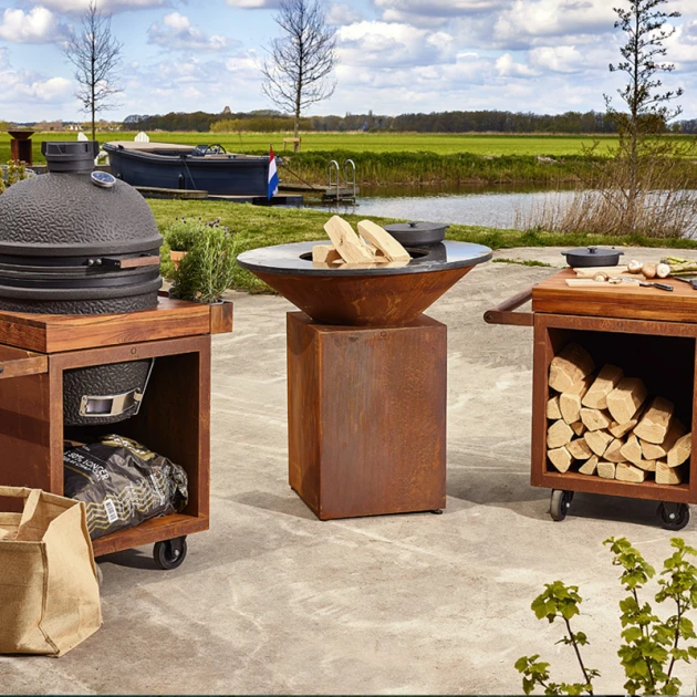 Ce OFYR Classic 100 propose une surface de cuisson plus grande que le modèle en 85, on peut ainsi cuisiner pour 20 personnes en même temps ! Son design convient à tous les environnements, c’est un bel objet design en acier Corten. Le simple fait de l’allumer transforme n’importe quel évènement en une occasion particulière.