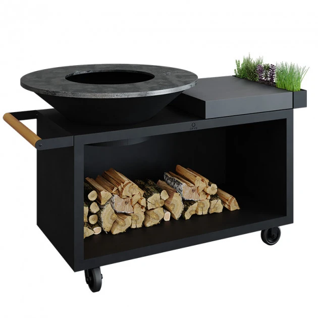 Sa plaque de cuisson en acier noir entourant le braséro permet à la plancha OFYR de vous offrir une surface de cuisson incomparable. On peut cuisiner chacun de son côté ses propres préparations tout en étant ensemble, ou bien confier la tâche à quelqu’un qui n’aura aucun souci à gérer les différents plats grâce aux différentes zones de cuisson.