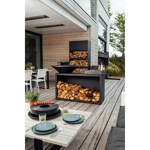 Pratique, cette plancha braséro possède une large surface de stockage pour y conserver plus d’une cinquantaine de bûches et les protéger des intempéries. Cette plancha est également dotée d’un plan de travail, idéal pour concevoir votre repas, déposer des ustensiles ou sauces.