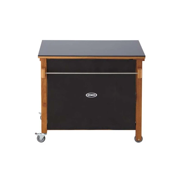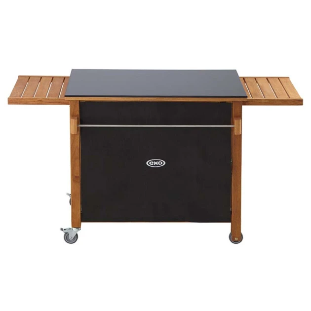 Très résistante aux conditions extérieurs, la desserte pour plancha ENO est fabriquée en robinier et support un plateau en HPL.