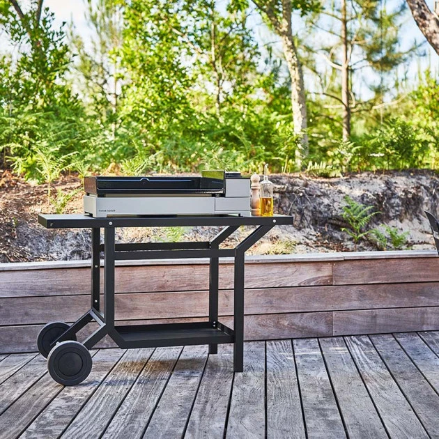 Cette table roulante de chez Forge Adour est compatible avec les planchas 45, 60, et 75. La desserte vous permettra de déplacer votre plancha à gaz en toute simplicité. Vous disposez également d’un espace de travail conséquent et d’un compartiment pour y poser votre bouteille de gaz.