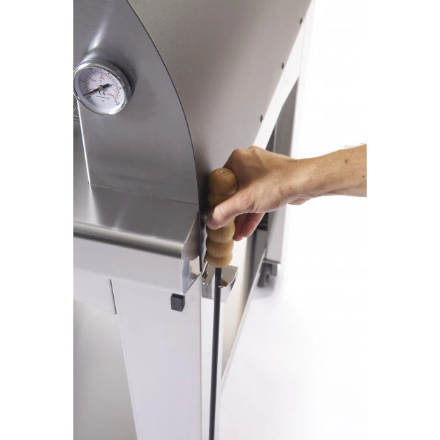 Double corps en acier réfractaire garantie la longévité de l’ensemble du barbecue four à pizza. La sole foyère est constituée de chamotte (pierre réfractaire) alimentaire. Cela garantit une cuisson parfaite de la pâte, à la fois onctueuse et croustillante.
