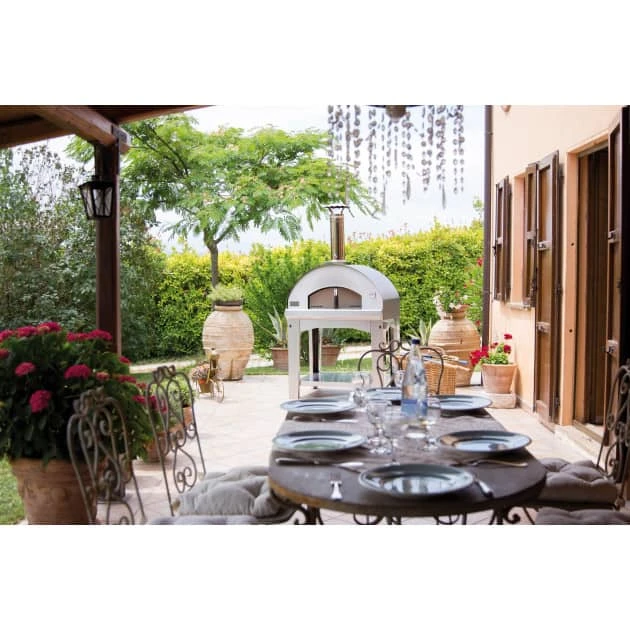 Au coeur du foyer est placée une pierre en chamotte réfractaire. Elle permet de diffuser la chaleur de façon constante et doucement afin que la cuisson ressemble en tout point à celles réalisées dans les fours à pizza bois traditionnelles. Grâce à une isolation efficace, la température peut monter jusqu’à 480°C. C’est la plus haute température du marché sur des fours à bois de même gabarit.