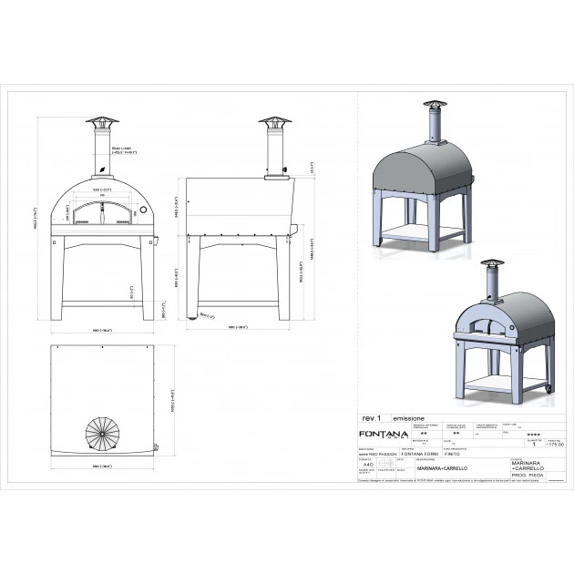 Le foyer est en chamotte réfractaire de 3 cm d’épaisseur de haute qualité et certifiés pour un usage alimentaire. La structure interne est réalisée en acier inoxydable, alors que l’extérieur est en acier galvanisé traité avec des revêtements à haute température pour une résistance maximale à la chaleur, aux intempéries et à la rouille. L’isolation du four est réalisée en laine de roche naturelle de 7 cm d’épaisseur et permet de contenir la température de manière plus efficace et d’éviter que la température extérieure est trop élevée.
