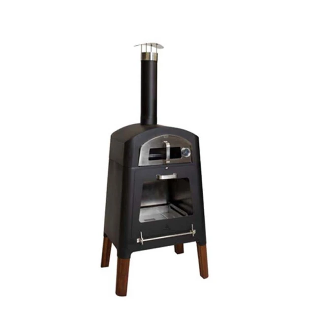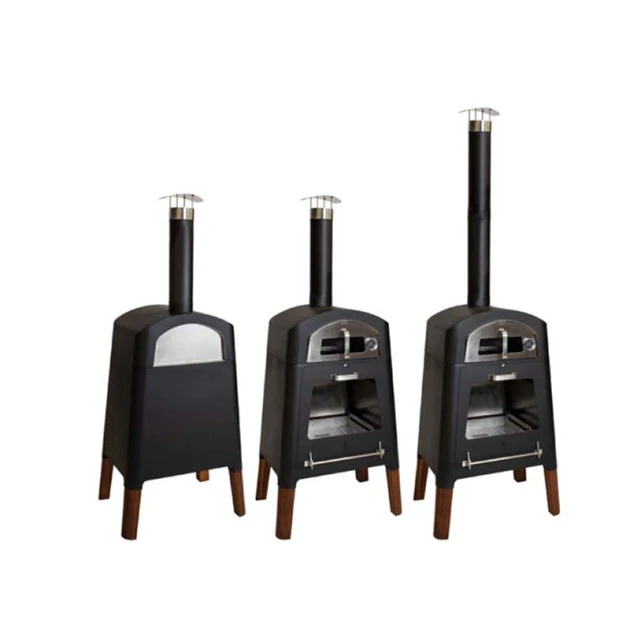 Le four à bois Masuria est en acier inoxydable, peint en noir. C’est un matériau qui résiste très bien aux intempéries et aux haute température. Les portes sont également en inox, et sont équipées d’une vitre en verre pouvant supporter jusqu’à 800°C. Les vitres assurent la sécurité tout en vous permettant de profiter de la beauté du feu. Les pieds en bois exotique ajoutent une touche d’élégance !