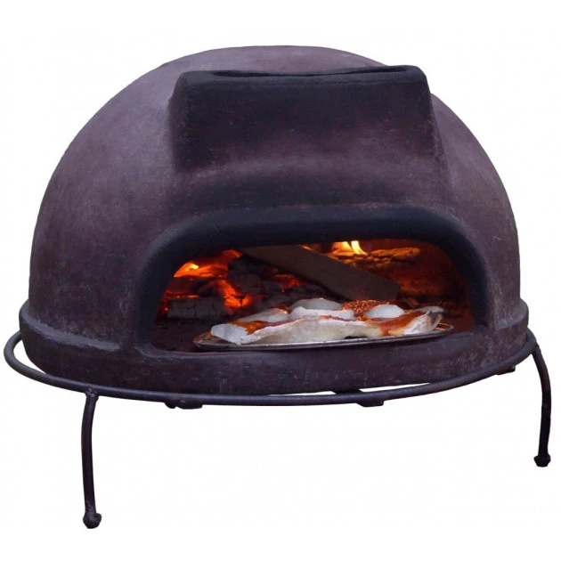 Ce four a été conçu dans la plus pure tradition mexicaine. L’ensemble est en terre cuite, disposé sur une base en fer pour éviter tout risque d’abîmer la table où vous poserez votre four à pizza.