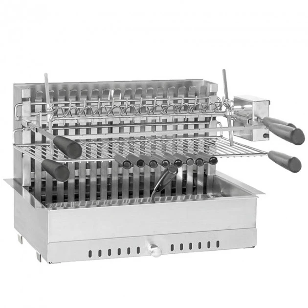 Forge Adour, particulièrement connu pour ses planchas de qualité, nous propose également des grils. Le gril en inox modèle 918.66 est un barbecue encastrable sur un chariot ou dans une cuisine d’extérieur double foyer (vertical et horizontal). Pratique, sa grille de cuisson est réglable sur 2 niveaux. Son tournebroche compris avec ce barbecue permet de varier les modes de cuisson.
