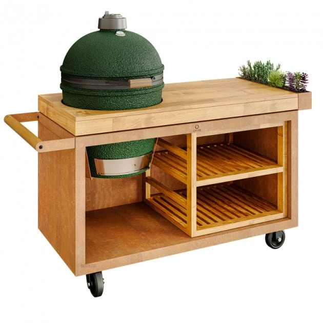 La table Ofyr pro vous non seulement un encastrement pour votre kamado Big Green Egg mais pas que. Les quatre roues dont deux pivotantes vous permettent de déplacer votre unité de cuisson où vous le souhaitez facilement. Vous profitez également d’un grand espace de travail pour préparer, découper vos cuissons. Il y a également un grand espace de rangements pour tous vos accessoires, ustensiles et charbon.