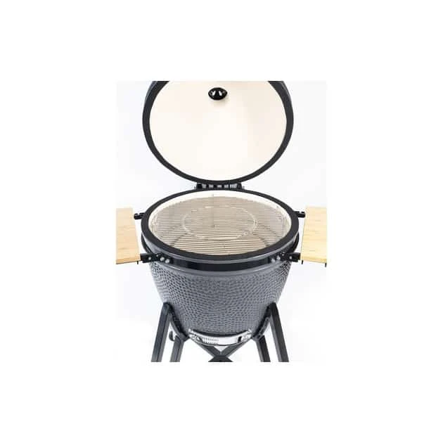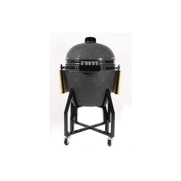 Ce kamado se trouve sur une base mobile et met à votre disposition deux tablettes rabattages, pour un espace de travail confortable et à proximité.