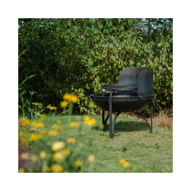 Le pare-vent s’installe sur les rebords de votre brasero. Fabriqué à partir du même acier britannique de haute qualité que les braseros, le pare-vent peut être simplement soulevé sur et hors de votre foyer selon les besoins. Positionnez le pare-vent de manière à ce qu’il bloque le vent et allumez votre feu comme d’habitude. Les grilles pivtantes et amovibles ainsi que les grilles barbecue en demi-lune peuvent toujours être utilisées lorsque le pare-vent est en place.