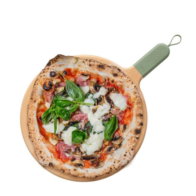 En bois de hêtre, cette grande planche à découper de 31cm de diamètre sera parfaite pour accueillir vos pizza à la sortie du four.