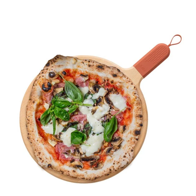 En bois de hêtre, cette grande planche à découper de 31cm de diamètre sera parfaite pour accueillir vos pizza à la sortie du four.