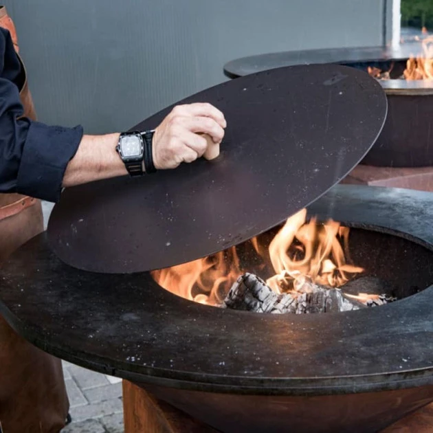 Cet étouffoir en acier thermolaqué noir est l’accessoire sécurité indispensable de la plancha braséro OFYR modèle 100. Ce couvercle permet d’étouffer le feu de votre Ofyr et d’éviter que les cendres s’éparpillent partout dans votre jardin. L’acier thermolaqué est robuste et résiste aux intempéries.